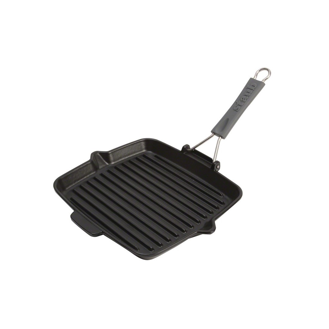 Griglia quadrata in ghisa 24x24 cm con manico in silicone per una presa salda e sicura. Perfetta per ogni tipo di preparazione, dalle classiche bistecche al pesce, dalle verdure al pollame.