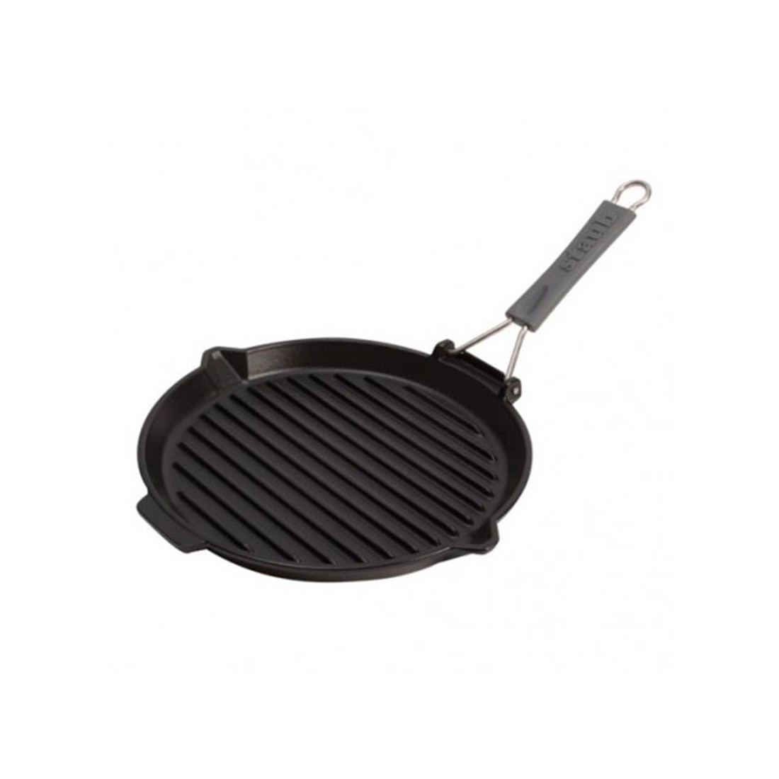 Griglia rotonda con diametro di 27 cm con manico in silicone per una presa salda e sicura. Perfetta per ogni tipo di preparazione, dalle classiche bistecche al pesce, dalle verdure al pollame.