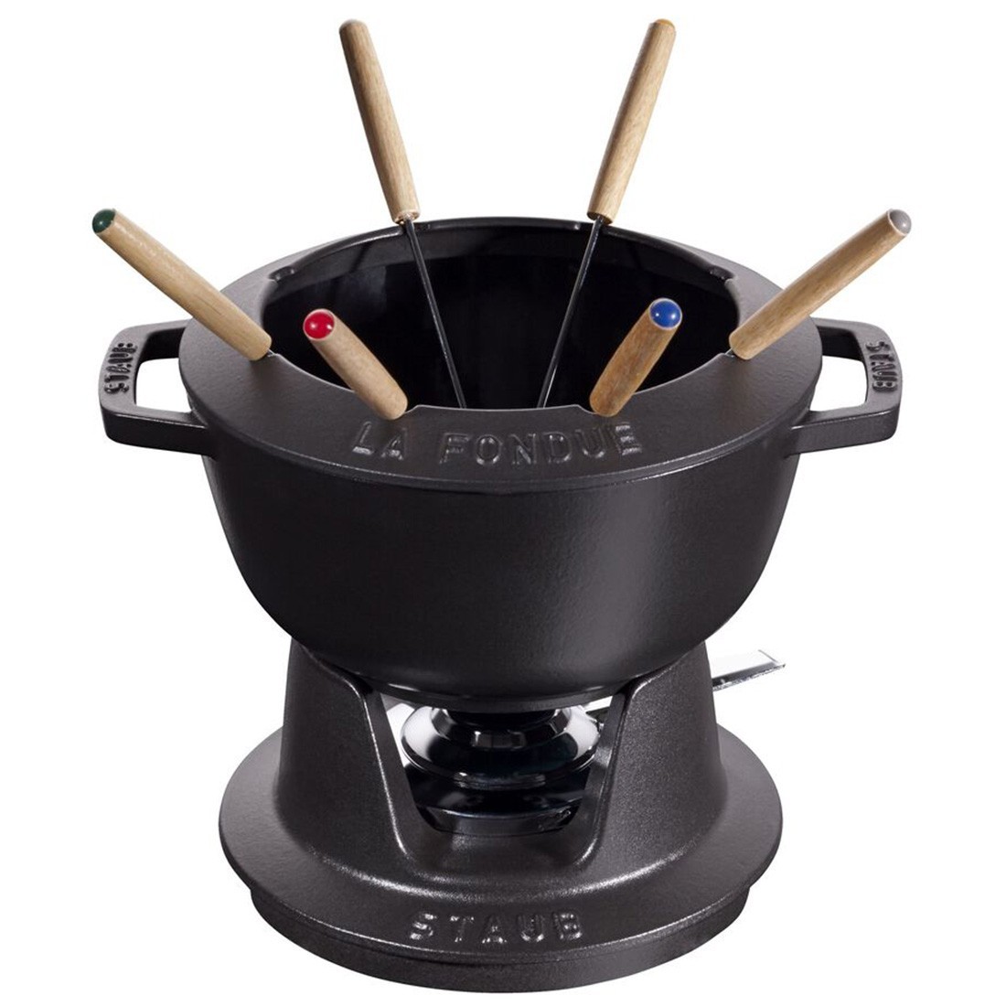 Il set da fonduta rosso ciliegia di STAUB è adatto per deliziose serate in compagnia di familiari o amici. Qui puoi cucinare piccoli pezzi di carne, oppure puoi utilizzarla per una gustosa fonduta di formaggio. In questo set, realizzato con materiali di alta qualità, puoi anche sciogliere della cioccolata. Può anche essere utilizzato su fonti di calore elettriche.