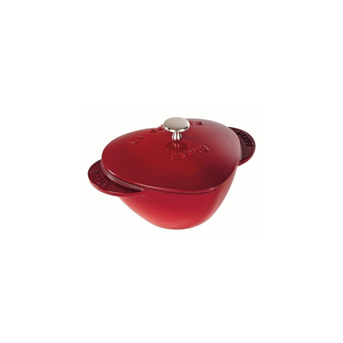 Cocotte a cuore 20 cm in ghisa smaltata Staub in elegante finitura rossa ciliegia, un’icona di design perfetta per occasioni speciali come San Valentino, anniversari o regali romantici. Unisce estetica e funzionalità per portare in tavola emozione e cucina di qualità.