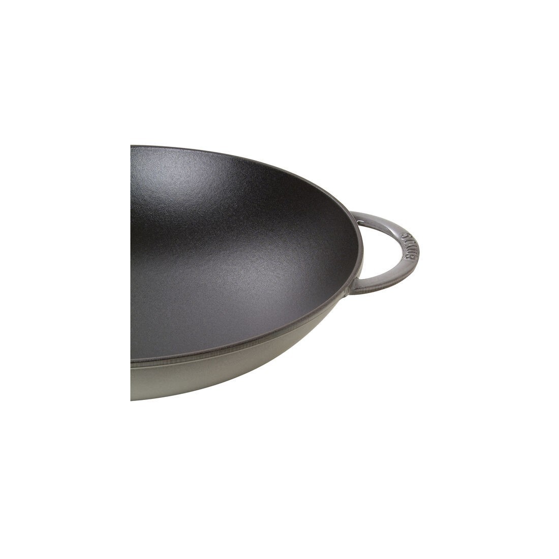 Wok in ghisa smaltata Staub in finitura classico nero opaco con coperchio in vetro. Ideale per preparazioni ispirate alla cucina asiatica e non solo. Perfetto per stufare, cuocere al vapore e friggere carne, pesce e verdure con risultati sempre uniformi.